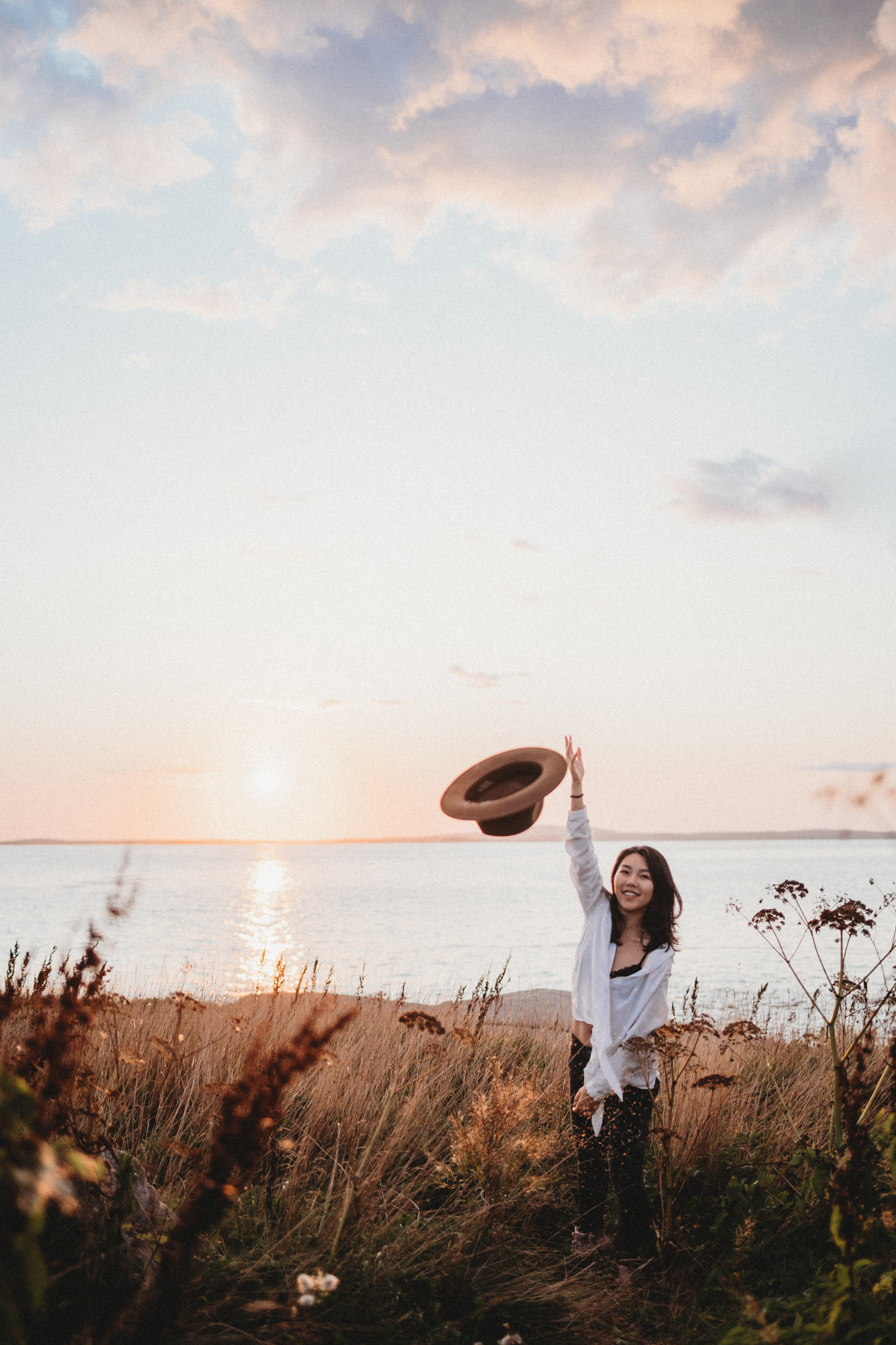 A free spirit, captured in the windswept beauty of Nova Scotia, where nature meets self-expression.
